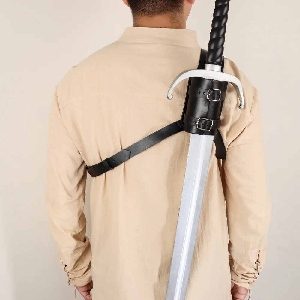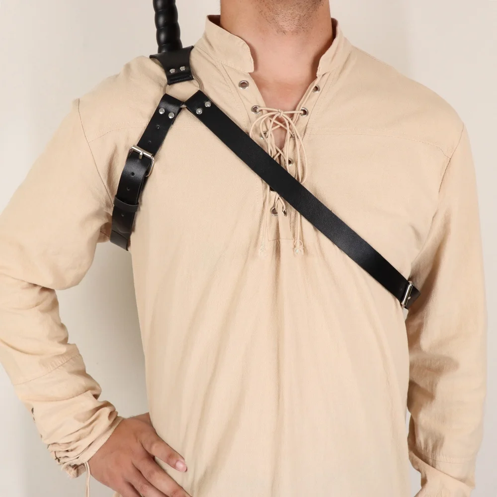Black Premium Viking Medieval Knight Sword Sheath PU Leather Halloween Costume Accent Perfect for LARP Stage Cosplay